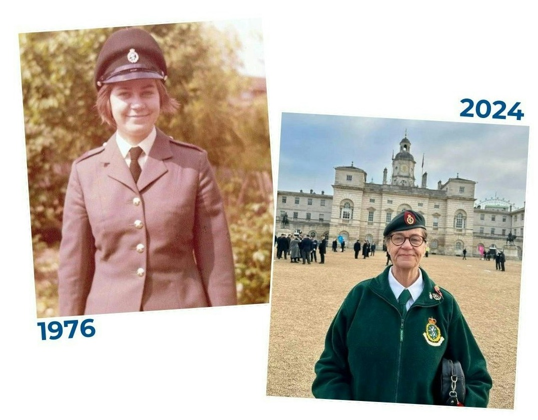 Here is Carol in 1976 when she joined the army, and then again in 2024 on the day of the march.